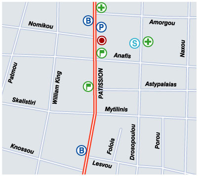 Notes: Around the Hotel there are numerous stores and services; from super-markets to rent-a-car. For any information you might need, just ask the reception and you will be given detailed information as well as a map of the area to help you move around Athens more freely.